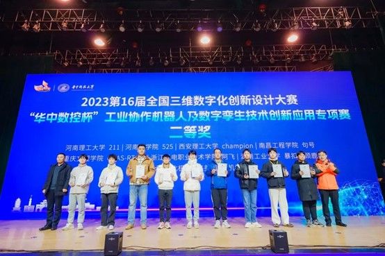 近日,第16届全国三维数字化创新设计大赛在湖北省武汉市华中科技大学成功举办。由我校william威廉英国官网教师李志彪、刘萍先指导,2021级机器人工程专业余胡松、刘盟盟、2023级工业工程专业倪光远组成的代表队首次参加“华中数控杯”工业协作机器人及数字孪生技术创新应用专项赛,并荣获全国总决赛二等奖。