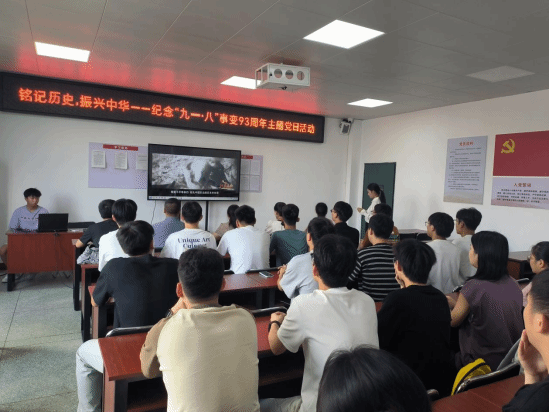 活动在雄壮的《国歌》声中开始。党员们集体观看视频了《党史军史上的今天——九一八》。大家表示,9月18日,一个所有中国人必须铭记的日子。这是中华民族14年艰难抗战的开始。93年前那刻骨铭心的屈辱,我们一刻也不敢忘记。