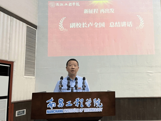 卢全国向2024级新生表示热烈的祝贺,并从学校的发展历程及人才培养特色出发,向新生们展示了学校的历史与成果。他鼓舞新生一是要树立制造报国之志,以“重塑江西制造辉煌”战略目标为己任,努力成长为具有扎实专业知识和奋斗精神的高层次应用型人才。二是要学好自身专业,时刻保持积极向上的心态,自觉遵守寝室公约,培养健康的生活习惯。最后,他为新生推荐了三本书籍,引导新生在学习中不断磨练和提升自我。他鼓舞2024级新生要胸怀鸿鹄之志,勇攀科学高峰,在新的起点上书写属于自己的青春华章。