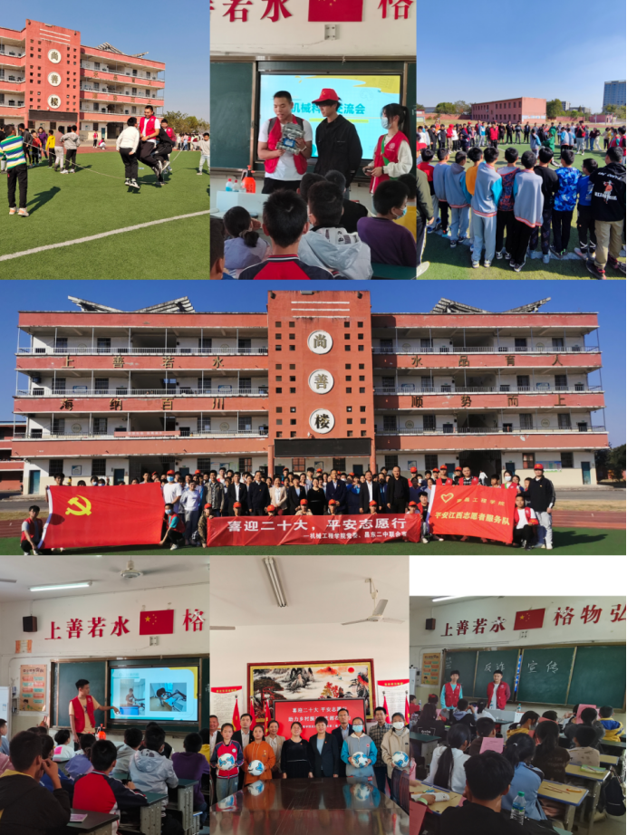 学生党支部开展了“送科技 送体育送平安”下乡活动。刚刚获得2022“西门子杯”全国智能制造挑战赛总决赛二等奖的20级机械电子工程陈乐同学分享了比赛经历,展示了西门子博图软件运行下的虚拟场景,并寄语初中生们要树立科技创新意识、培养创新思维、提升创新能力。来自大学生机械创新基地的学生骨干结合图片、动画讲解、实物演示等方式,为初中生们介绍了机械创新模型在日常生产、生活中的应用,让他们感受科技之美,启蒙创新意识和创新能力。学生党员们还在操场上组织初中生们开展了“欢乐跳大绳”、“桃花朵朵开”、“破冰总动员”等丰富多彩的体育素拓活动,现场充满了欢声笑语,气氛热烈高涨。