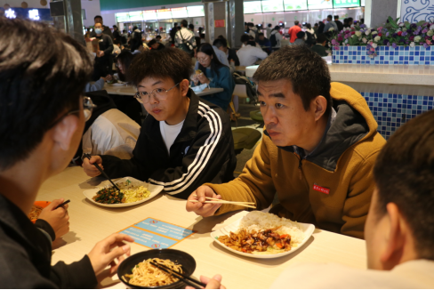 与学生共进午餐。沁园食堂里,李培生与联系班级2021级机械设计制造专业1班的部分同学共进午餐,面对面交流,倾听同学们对学校餐饮工作、环境和服务的看法和建议,勉励同学们珍惜时光,把握青春,钻研专业,努力成才。