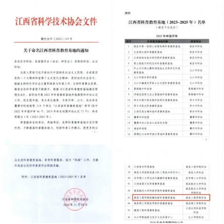 近日,江西省科学技术协会发布了《关于命名江西省科普教育基地的通知》,我校william威廉英国官网的机械创新科普教育基地荣获江西省科普教育基地称号。