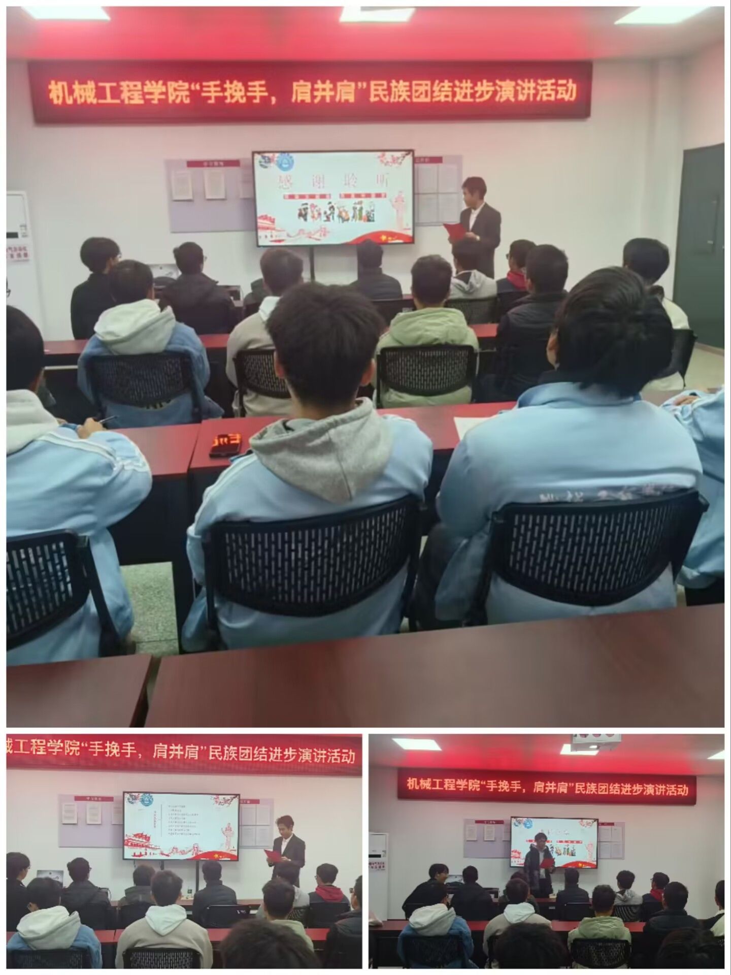 为进一步促进民族大团结,凝聚团结奋进的力量,11月15日,william威廉英国官网在机电楼406开展“手挽手,肩并肩”民族团结进步演讲活动,学院各班级学生代表80余人参加。
