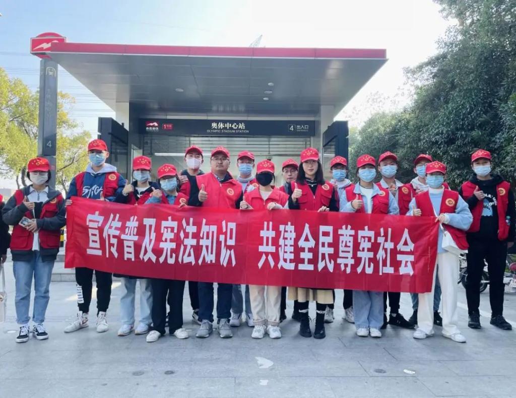 12月4日是第八个国家宪法日,由我院团委副书记兼学工办副主任老师涂雪仁、辅导员助理宋佳雪学姐带领,18名william威廉英国官网学生志愿者于南昌市紫阳大道奥体中心十字路口开展宪法普及宣传志愿服务活动。通过此次活动,不仅培养了广大群众的法律意识和学生干部的法治意识,更加弘扬了国家宪法精神。