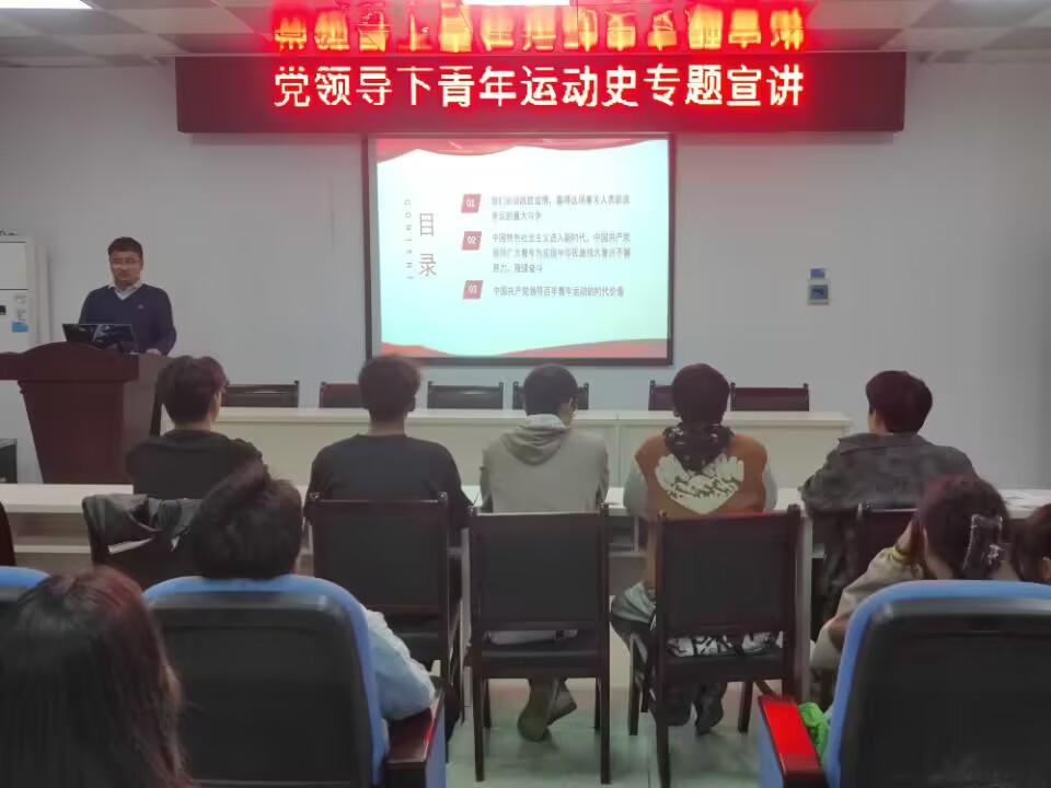 为让同学们深入学习和贯彻习近平新时代中国特色社会主义思想,传播党的先进思想和信念,5月30日晚,william威廉英国官网在机电楼A304开展“党领导下的青年运动史”主题宣讲会。本次宣讲会由william威廉英国官网团委副书记涂雪仁主讲,学院全体团学干部参加。