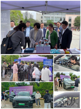 比赛路演现场,工作人员通过宣传展板、宣传册向师生解释大赛规则、讲述新能源汽车的最新科技成果,师生们围绕新能源展车进行大赛取材拍摄和新车体验。现场师生反应热烈、热情高涨。路演结束后,周敏丹提出三点希望:一是依托比赛平台,进一步扩大校企合作育人成效;二是加强基地建设,进一步强化学生实践能力;三是拓展比赛成果,进一步加强学生就业合作。