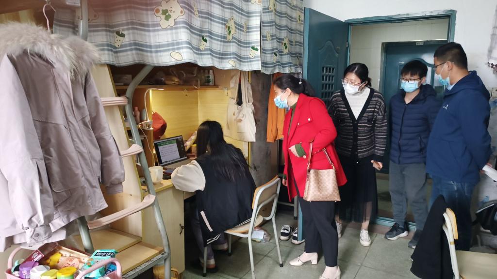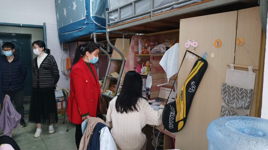 走访宿舍期间,张丽玲每到一间宿舍都亲切地和同学们交谈,询问同学们的日常生活、学习情况,同时叮嘱同学们认真打扫卫生,保持宿舍通风透气,将各项疫情防控工作落实落细,一起营造舒适、温馨的宿舍生活环境。同行的其他辅导员分别前往各自班级宿舍,看望班级学生,了解同学们学习、生活、疫情防控情况。