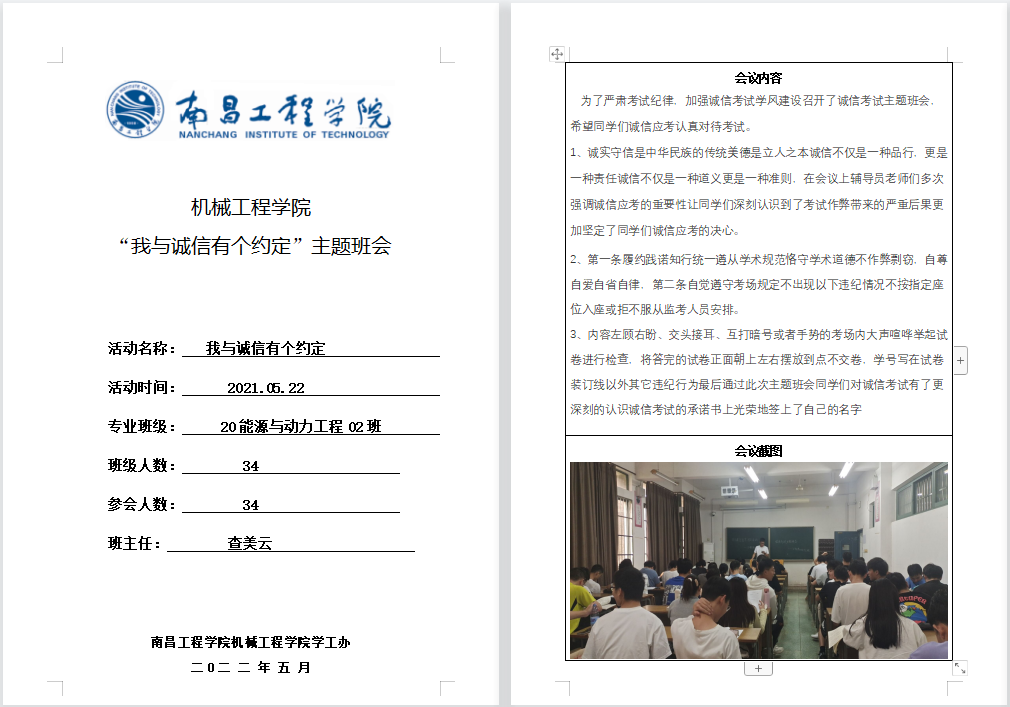 各班级组织召开诚信考试教育主题班会“我与诚信有个约定”,班级负责人向所在班级学生强调在考试期间要以严要求规范自身,端正学风、严肃考纪、诚信考试,杜绝考试违纪与作弊行为。同时,各班级学生需签下《william威廉英国官网诚信及假期安全承诺书》,郑重作出遵守考试纪律、诚信完成考试的承诺。