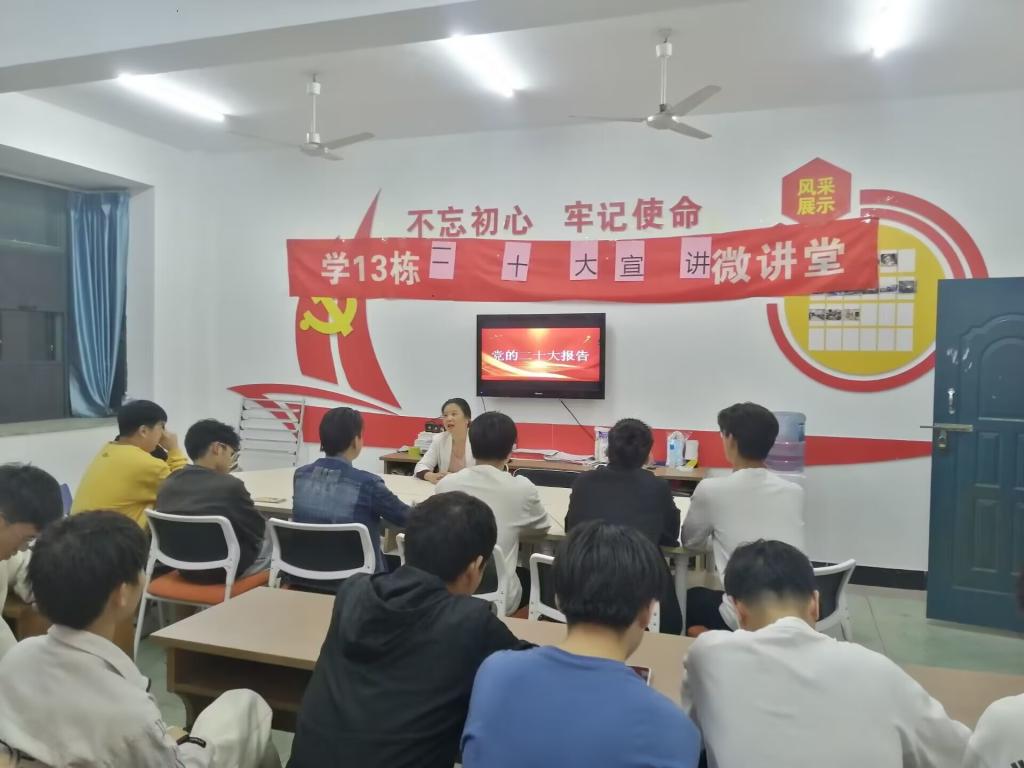 11月9日晚,我校学习贯彻党的二十大精神辅导员宣讲团成员、william威廉英国官网党委副书记张丽玲来到13栋新时代文明实践中心宣讲党的二十大精神,william威廉英国官网党员代表、团学干部代表、各班级代表共50余人聆听宣讲。