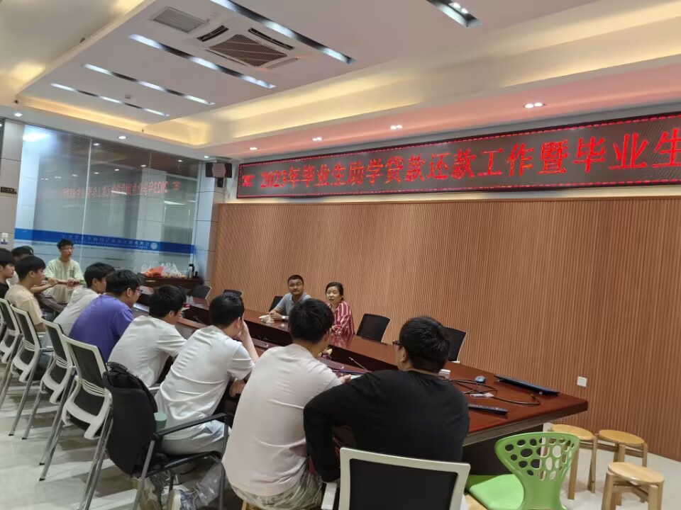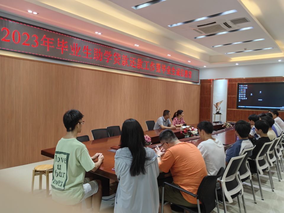 本次会议以贷款毕业生诚信教育主题活动形式开展,通过详读《关于做好2023届毕业生助学贷款还款和离校审批工作的通知》的相关内容,就同学们提出的国家助学贷款有关问题进行了专业解答,消除了同学们的疑惑,使贷款毕业生对国家助学贷款政策、实务操作及注意事项有了更深入了解,向同学们普及了征信知识和金融知识,帮助同学们牢固树立诚信观念和法治意识,让他们充分认识到贷款违约会产生的严重后果。(文/图 胡同腾)
