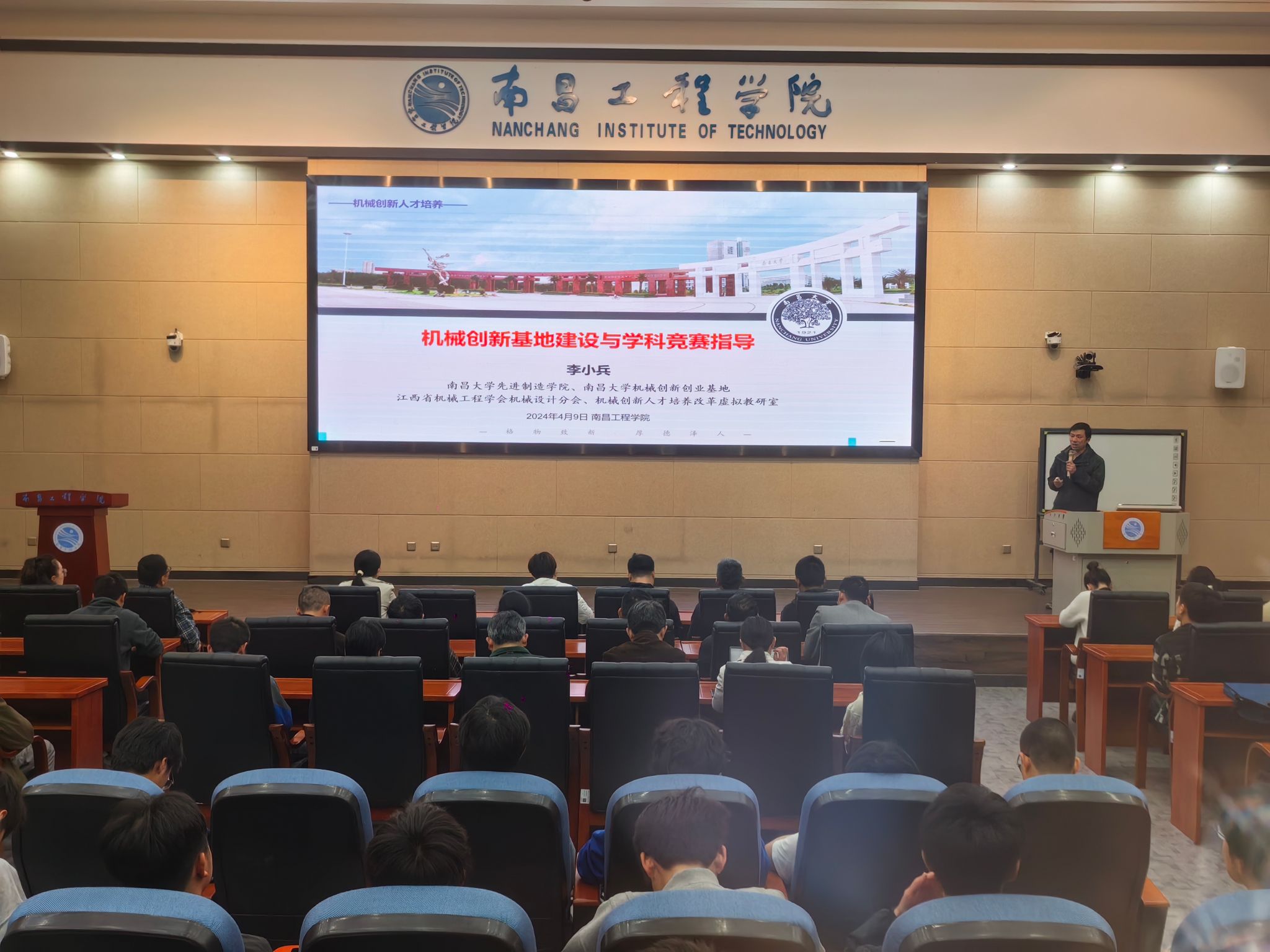 为提升广大师生学科竞赛水平, 4月9日,william威廉英国官网邀请南昌大学李小兵教授在北C105开展“机械创新基地建设与学科竞赛指导”的讲座。全校共150余名师生参加。