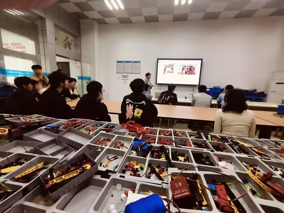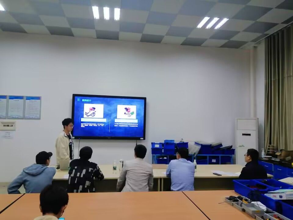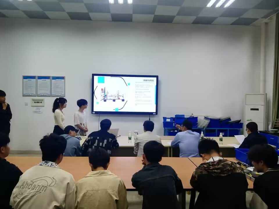 比赛中,同学们现场展示了作品设计,并介绍本团队作品的工艺性、创新性和实用性,现场的评委依据选手的作品给出指导意见并进行打分。参赛队伍在现场进行实物功能展示,他们认真调试作品,在各自的赛道上进行演示,并由现场评委依据表现进行打分。